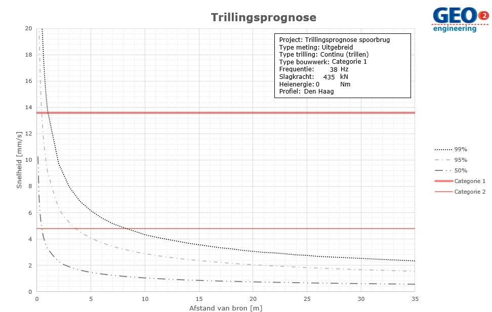 For various projects at home and abroad, GEO2 Engineering B.V. has determined the vibrations occurring in the ground during the installation of piles, sheet piles, tubular piles, etc. Based on the method according to CUR166, but also on state-of-the-art methods, the accelerations in the ground and the transmission to adjacent structures are calculated. This is used to determine any compaction that may occur in sand layers and/or whether limit values are being exceeded on adjacent properties.