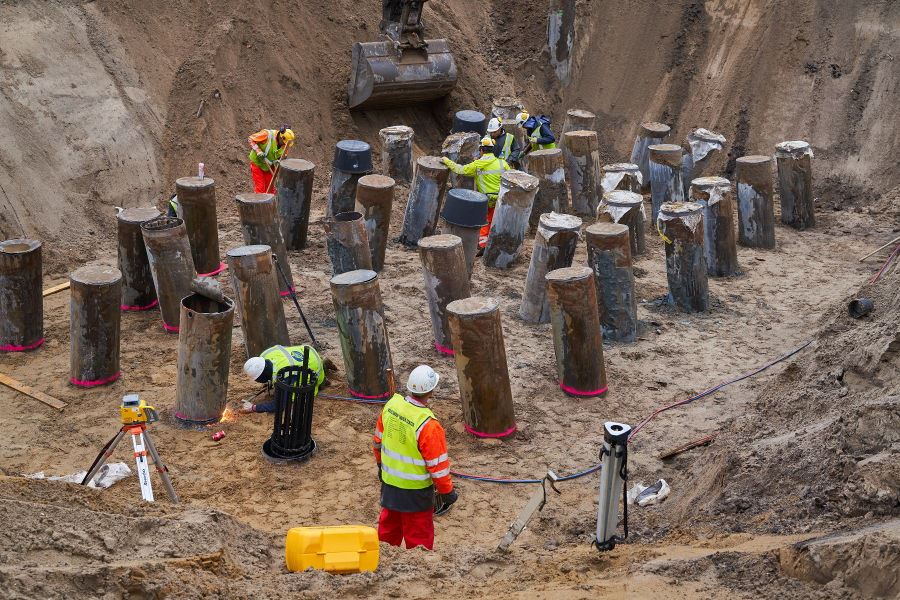 To relocate the Brittenpassage, new earthworks and covered railway tracks / slabs will be constructed during the suspension of normal services. After the placement of the new covered railway tracks, excavation under them will allow creation of the passage, including the supporting pillars.