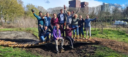 Afgelopen vrijdag hebben wij met het team van GEO2 Engineering B.V. een knuppel bruggetje en een houtsnipperspad aangelegd bij Stadsboerderij Eilandsteede in Utrecht.